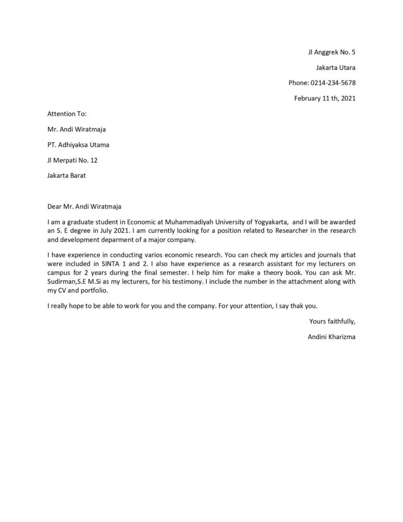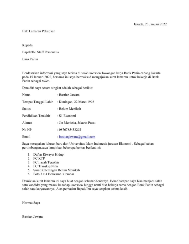 Surat lamaran sebaiknya singkat namun informatif. Hindari menyertakan informasi yang tidak relevan atau berlebihan.