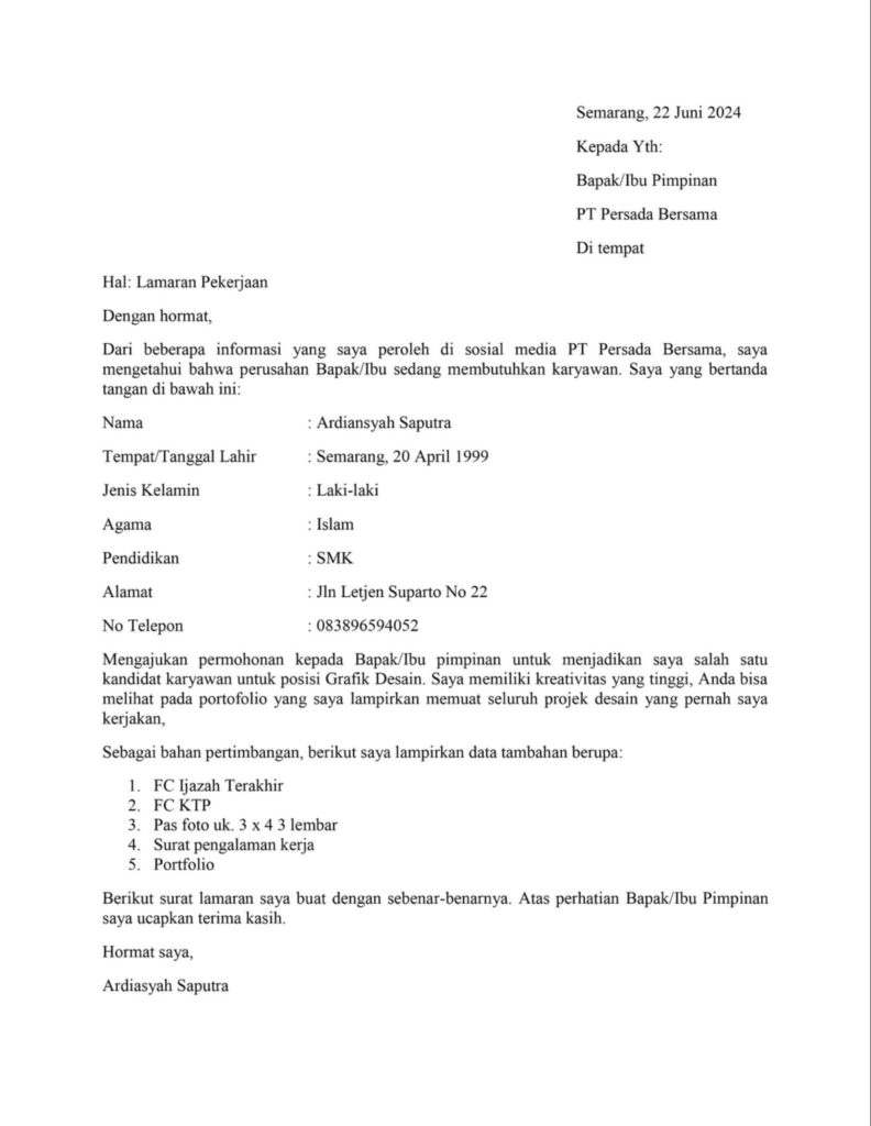 Dalam era yang semakin kompetitif seperti sekarang, memiliki surat lamaran kerja yang baik dapat menjadi kunci untuk mendapatkan perhatian dari perusahaan yang Anda lamar.