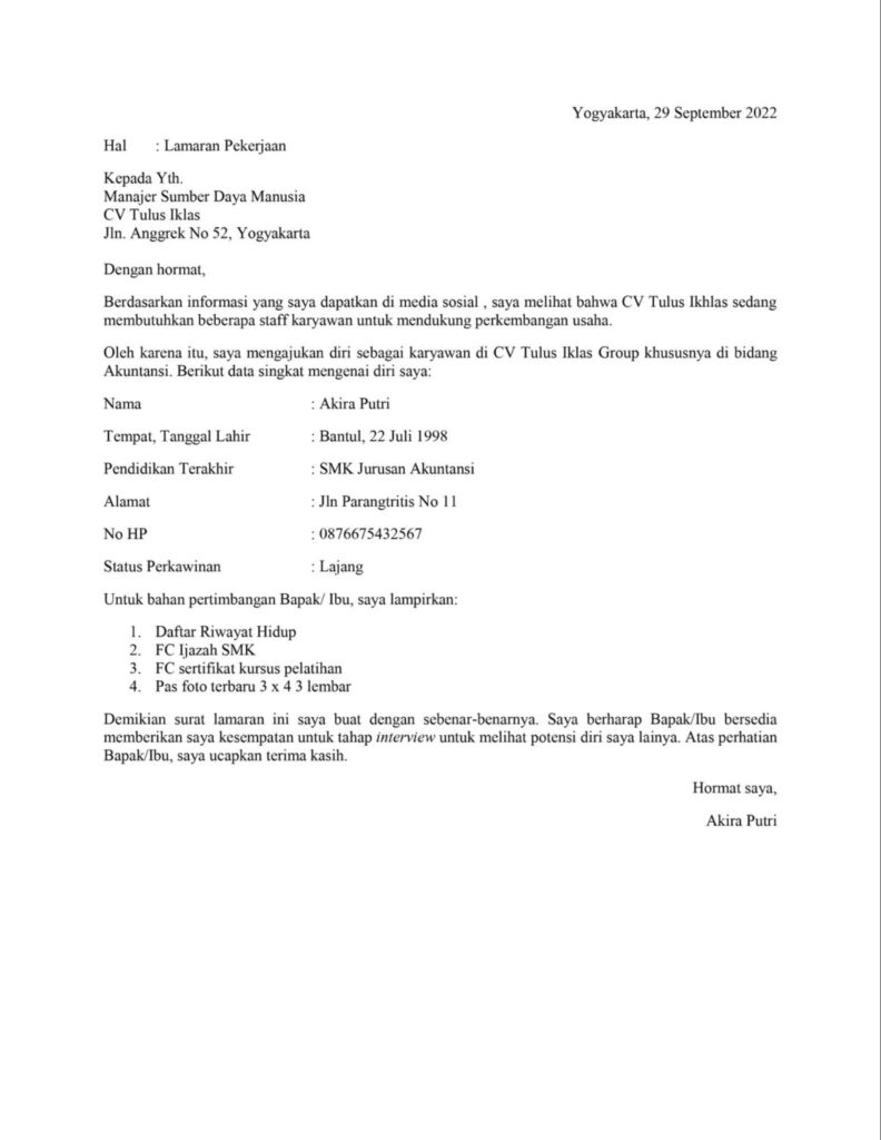 Menulis Surat Lamaran Kerja dalam Bahasa Indonesia yang Benar