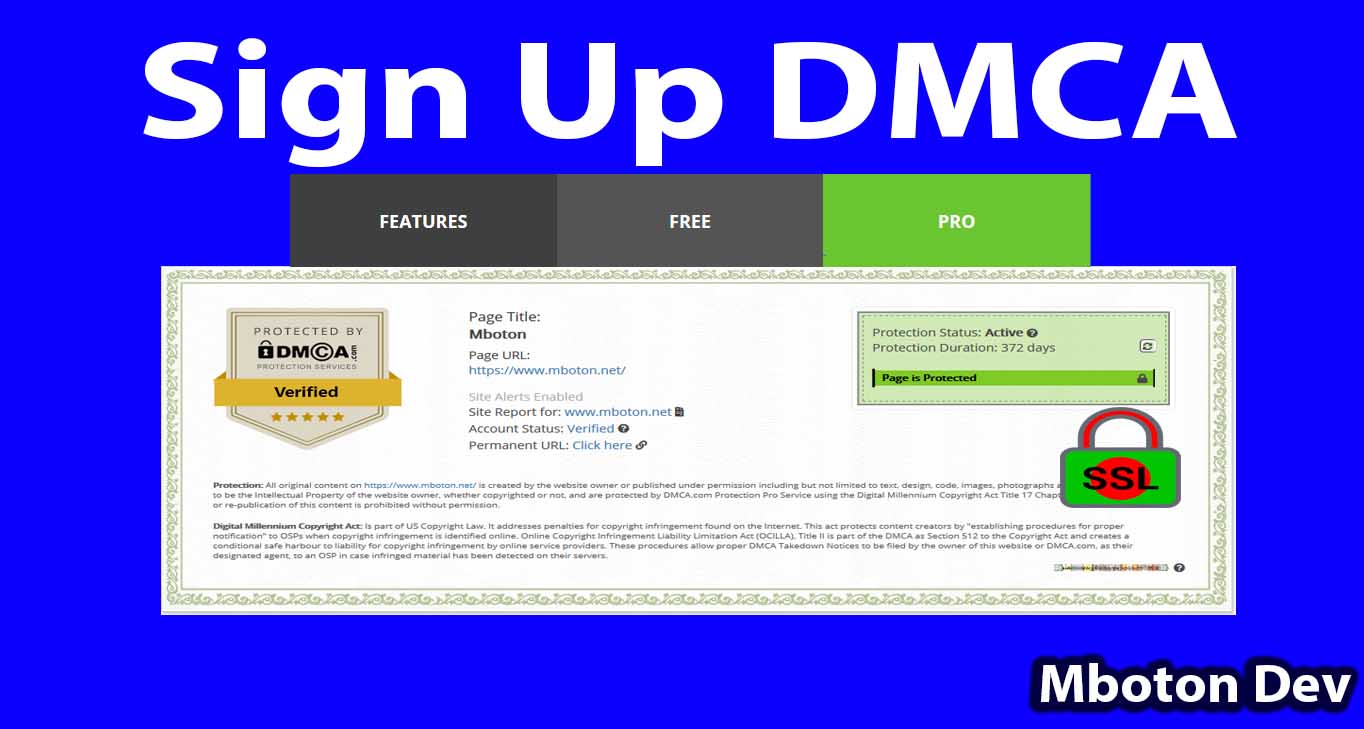 Sign Up DMCA Kali ada caranya kok broo tenang saja yaa hehe melindungi artikel atau konten yang kita tulis pasti original, kali ini sudah tersedia webtool untuk melindungi semua konten-konten atau artikel-artikel yang original kawan-kawanku yang ada di web saya Mboton ini.